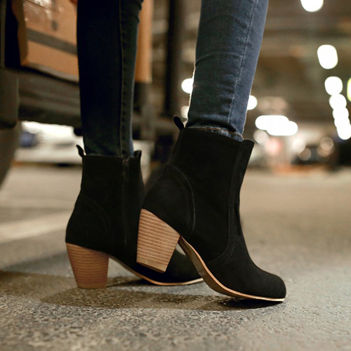 Modern comfort meets timeless style with this boots. Crafted from high quality frosted faux leather material,durable and good touch feeling. Fashion round toe and side zipper closure. Thick high-heel with anti-slip rubber sole,gives you a comfortable and safe walk. Try pairing it with a jeans or shorts with a simple t-shirt.