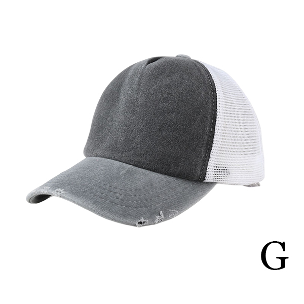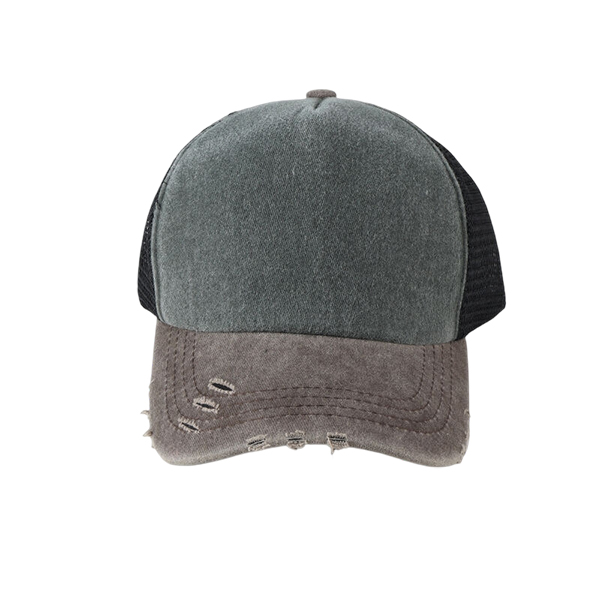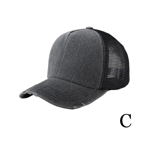 Vintage Washed Distressed Unisex Trucker Hat - Retro Mesh Back Baseball Cap with Ripped Brim