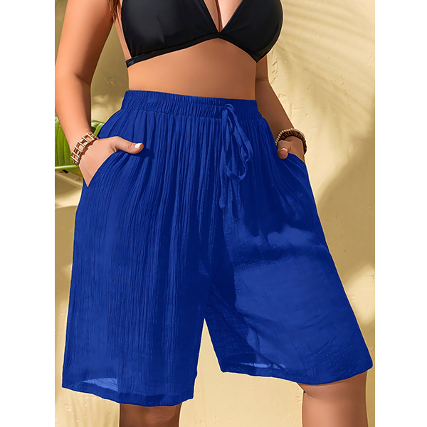 Women's Beach Cover Up Shorts Semi-Sheer Drawstring Elastic Waist Summer Swimwear Bottoms