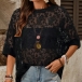Women's Boho Floral Lace Batwing Sleeve Loose Shirt