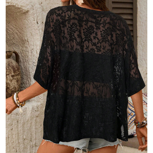 Step into summer with a touch of romance and freedom. This exquisite lace top blends delicate femininity with a relaxed, free-spirited silhouette, making it a must-have for your warm-weather wardrobe.