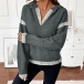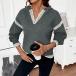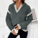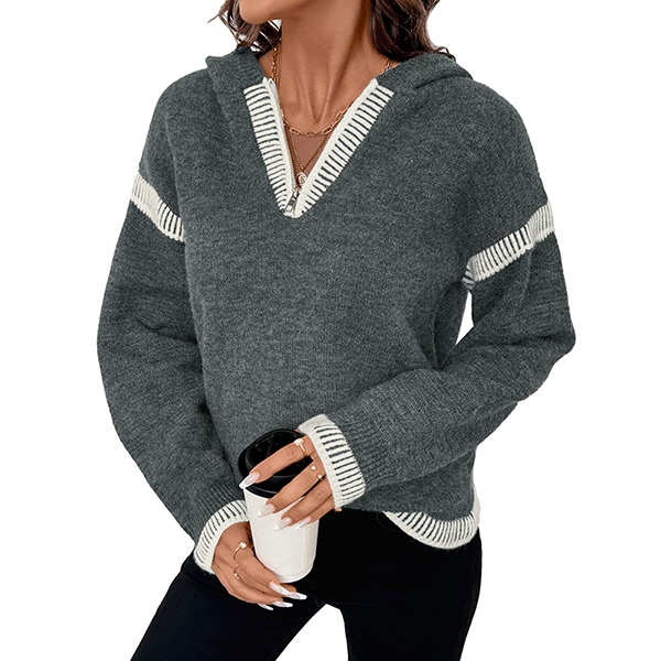 Women's Casual Half-zipper V-Neck Hooded Sweater with Contrasting Trim