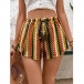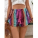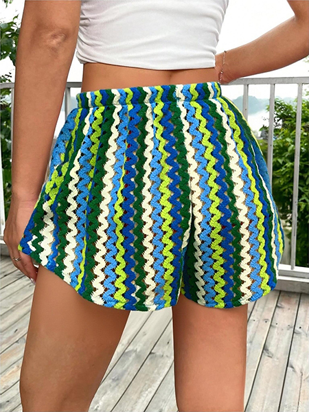 Women's Crochet Beach Shorts Cover Up Colorful Chevron Hollow Out Drawstring Tassel Summer Swimwear Bottoms