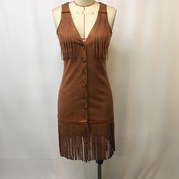 This dress features authentic western styling with luxurious faux suede construction and dynamic fringe detailing for contemporary cowgirl elegance. Pair with cowboy boots and western accessories for authentic cowgirl appeal.