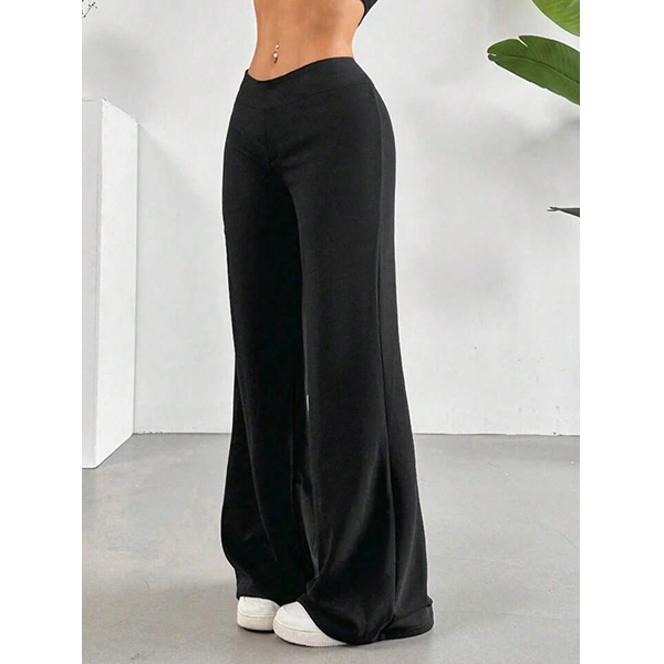 Meet your new go-to pants for effortless everyday style and unbeatable comfort. Designed with a sleek, seamless front and a comfortable pull-on wide waistband, these mid-rise pants offer a smooth, flattering silhouette without any bulky hardware. The fluid, wide-leg drape provides a relaxed fit that moves gracefully with you, making them perfect for everything from casual coffee runs to cozy days in. Crafted in a versatile black, these are the ultimate hybrid of loungewear comfort and streetwear chic.