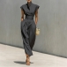Redefine your wardrobe with this architectural masterpiece. Available in crisp white and classic black, this dress is the epitome of modern sophistication, blending structured tailoring with effortless comfort.