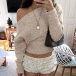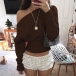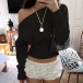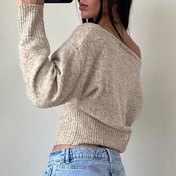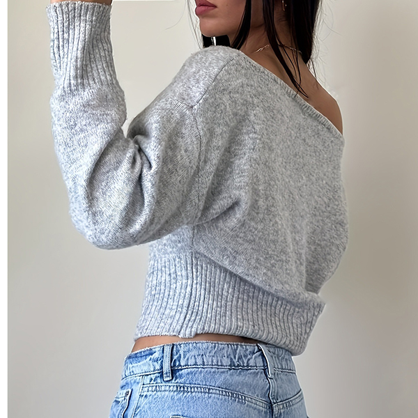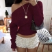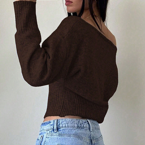 This chic top features contemporary slouchy one shoulder styling with dramatic dolman sleeves and comfortable knitted construction for modern relaxed elegance. Perfect for casual occasions, relaxed styling, or sophisticated contemporary coordination. Pair with high-waisted bottoms and casual accessories for sophisticated relaxed appeal.