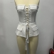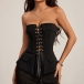 Women's Strapless Corset Top- Front Lace-Up Back Slit Peplum Bustier with Pockets