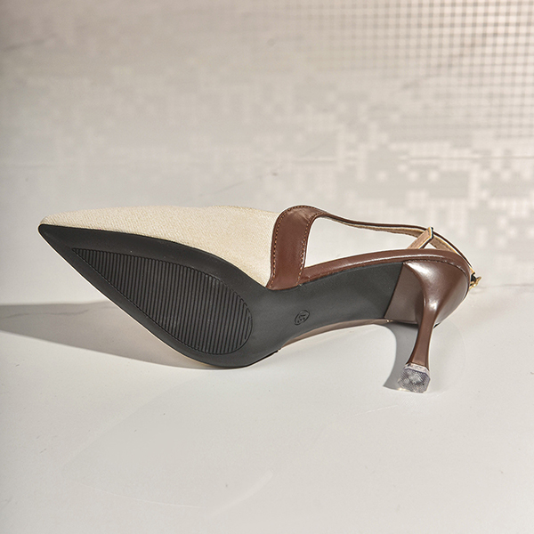 Women's Two-Tone Slingback Pumps - Elegant Pointed Toe High Heels with Faux Suede Texture for Work & Party