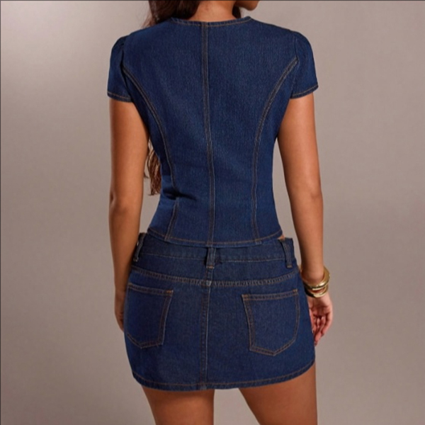 This isn't your average denim shirt; it's a meticulously tailored corset top designed to flatter and contour. Featuring a romantic sweetheart neckline and playful cap sleeves, this top strikes the perfect balance between edgy and feminine. The structured paneling mimics a vintage bustier, cinching your waist and highlighting your curves, while the rich dark indigo wash keeps the look sleek and modern. Whether you're going for a full double-denim moment or pairing it with your favorite going-out trousers, this crop top is a guaranteed statement maker.
