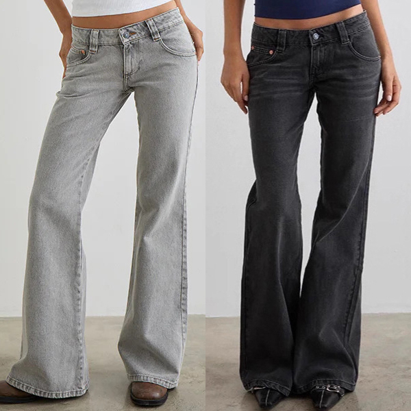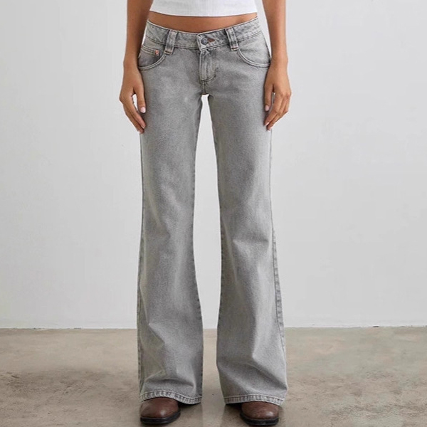Channel your inner 90s supermodel with our Minimalist Low-Rise Flare Jeans. Designed for the effortless "model-off-duty" aesthetic, these jeans feature a true low-slung waist that perfectly highlights your midriff. The silhouette is expertly tailored to hug your hips before cascading into a dramatic, leg-lengthening flare that sweeps over your favorite footwear. Crafted from premium denim with authentic vintage washes in muted charcoal and light grey, they offer a worn-in, grunge-chic vibe from the very first wear. Keep it simple, sleek, and undeniably retro.